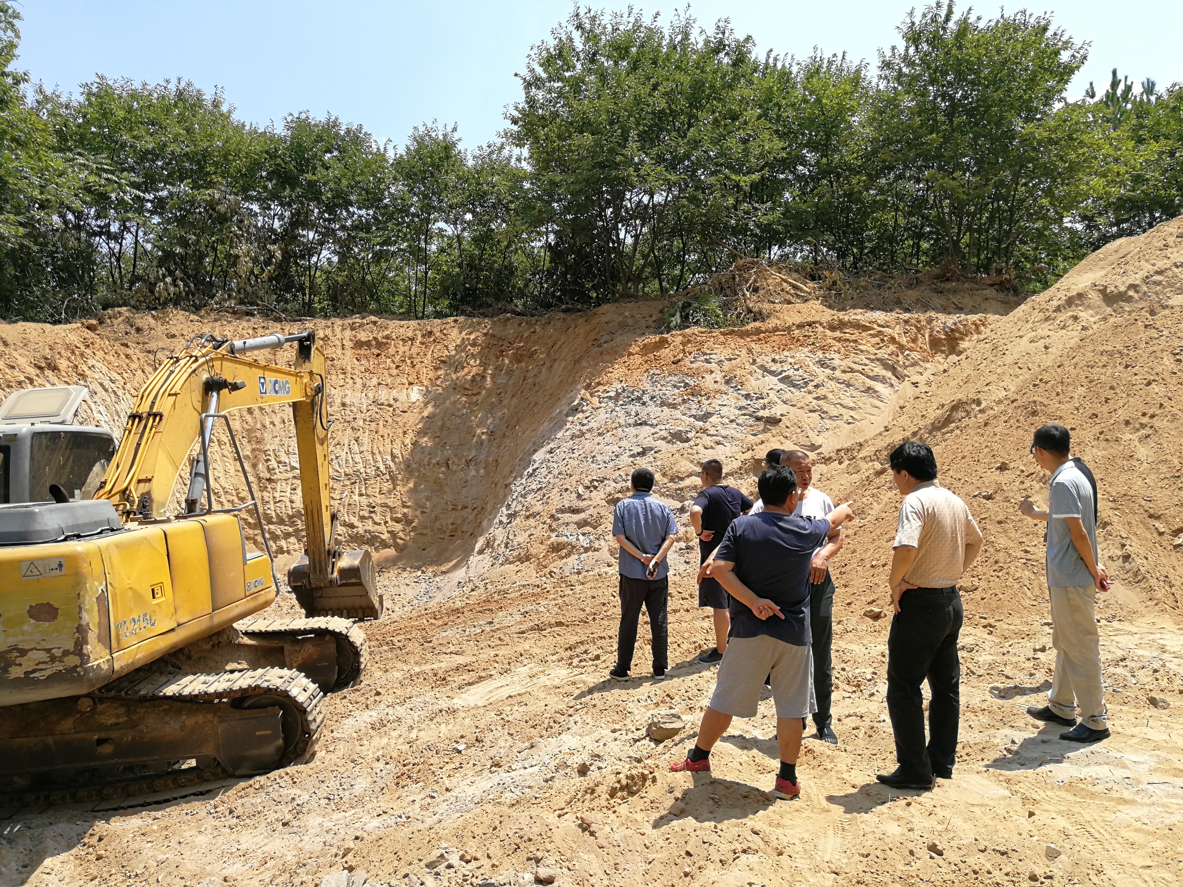 参加调研的同志们踏勘扶贫产业建设现场讨论建设方案