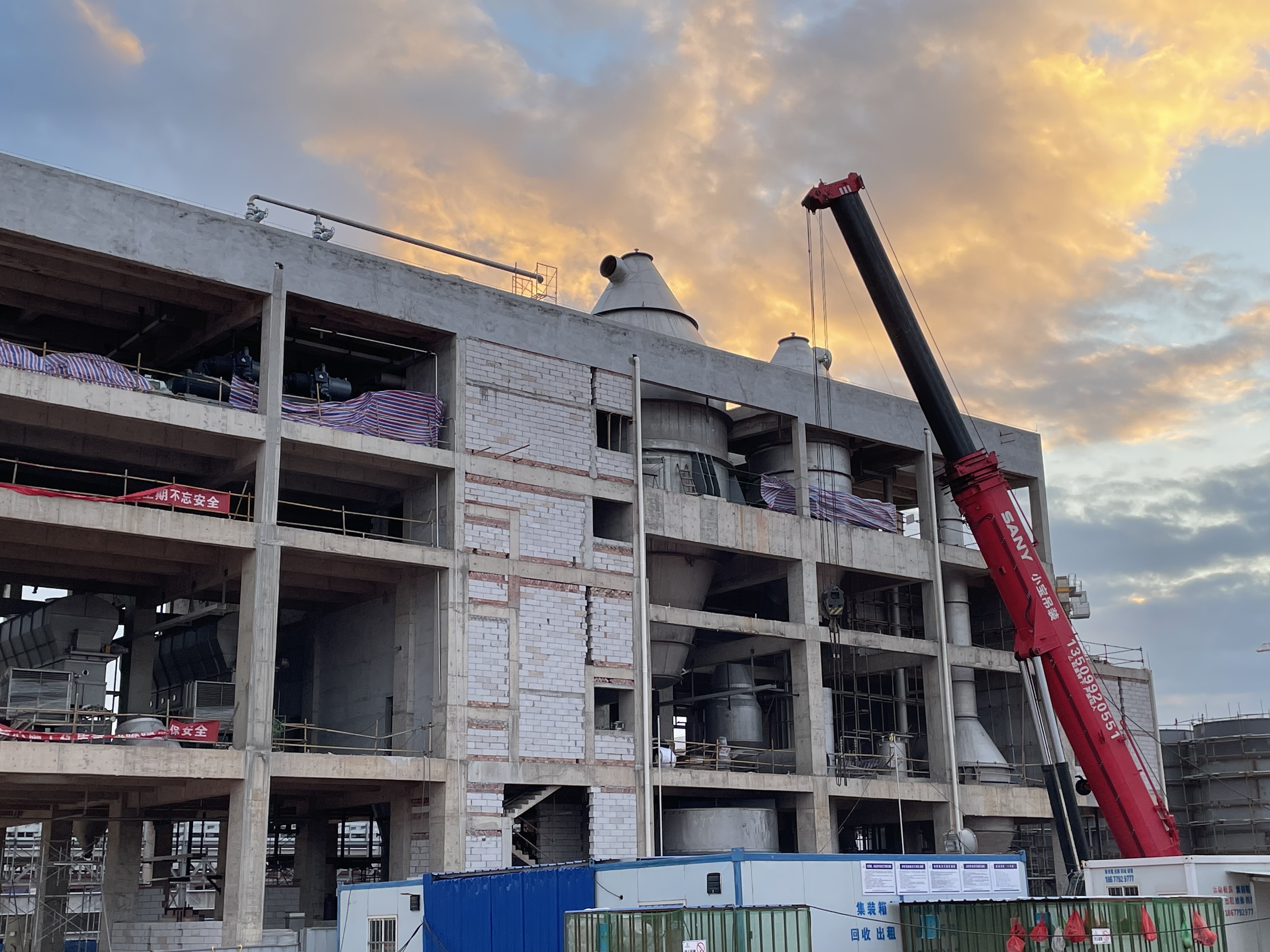 项目团队仅用短短59天,顺利完成生产车间主体封顶,刷新项目封顶工期新纪录,为工程竣工打下良好基础。