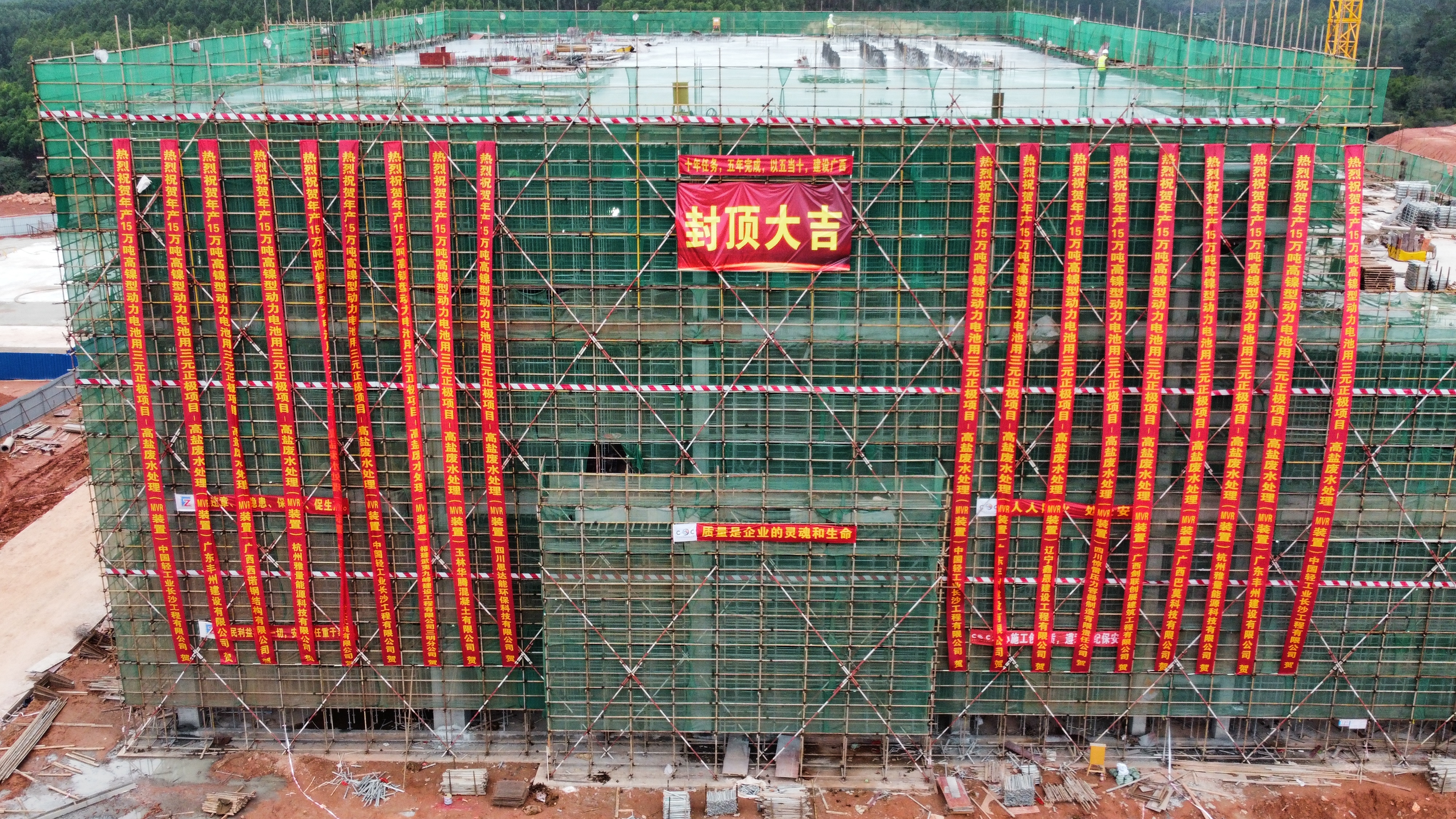 近期,由中国海诚长沙公司总承包的广西时代汇能锂电材料科技有限公司年产15万吨高镍型动力电池用三元正极项目-高盐废水处理(MVR装置)项目环保车间一生产车间迎来封顶大吉。
