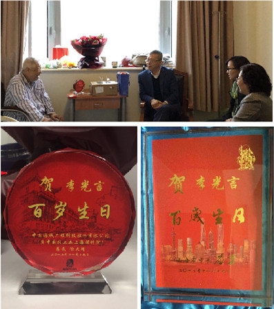 日前,适逢公司前身轻工业部上海轻工业设计院原副院长、离休干部李光言百岁寿辰,海诚股份党委书记、董事长徐大同,公司人力资源部负责人等一行专程前往华东医院探望老院长,送上鲜花及慰问品,祝福老院长延年益寿、健康幸福。