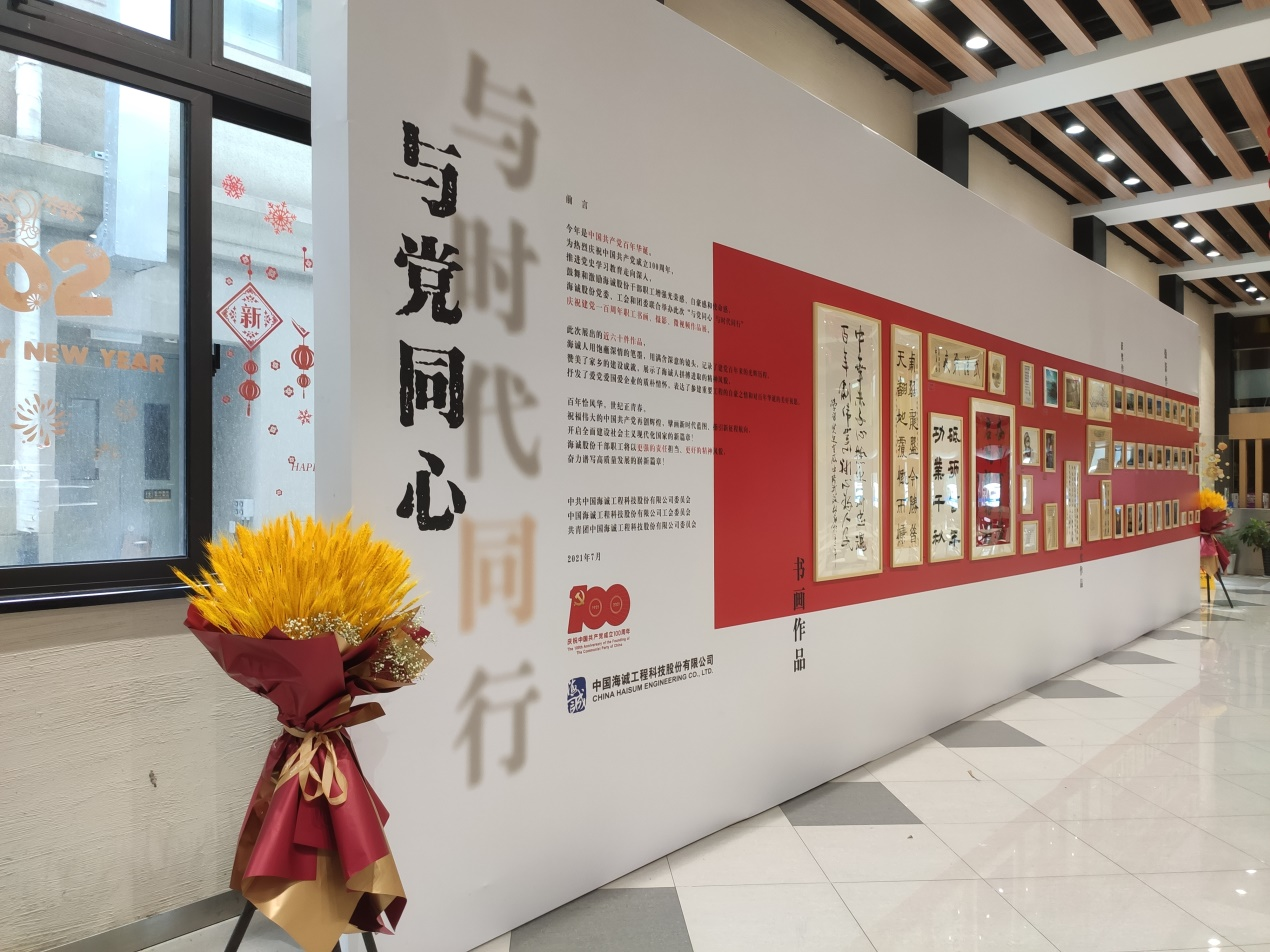 百年恰风华,世纪正青春。为热烈庆祝中国共产党成立100周年,7月21日,由海诚股份党委、工会和团委联合举办的“与党同心 与时代同行”——庆祝建党一百周年职工书画、摄影、微视频作品展正式在海诚股份上海总部拉开帷幕。