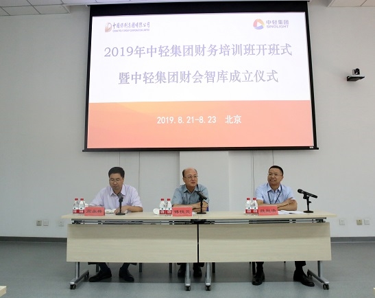 2019年8月21日-23日,中轻集团财务部在北京国家会计学院举办2019年中轻集团财务培训班。保利集团党委常委、总会计师傅俊元出席开班式并授课。中轻集团党委书记、董事长张万顺莅临指导并作讲话。中轻集团总会计师段赵清主持开班式暨中轻集团财会智库成立仪式。中轻集团总部及各级子公司总会计师、财务部门负责人及财务骨干人员共计81人参加培训。