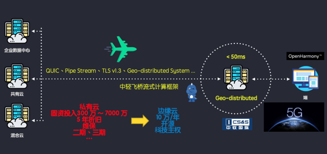 数字长臂三要素的第一个核心是全成本核算。基于开源中轻飞桥边缘计算平台的数字化工业应用,可将充分利用城市级边缘计算中心替代工厂的私有云建设,“超高速公路”数据传输体系可使得远程计算的响应速度与现场计算一致,从而多维度满足复杂工业计算场景的需求,将原本需要私有云处理的算力需求“卸载”至边缘,企业的资产负债表将极大程度的得到优化。第二个核心是数据安全。基于开源中轻飞桥边缘计算平台的应用,可以自动分布式部署。灵活的部署模式和数据同步方案,使得数据既可以在厂区范围内自治,又可以全国范围内跨地域实时同步。第三个核心是迭代效率。企业数字化建设的过程,是主营业务、数字化手段、市场、生态四个方面需要相互配合,不断优化和迭代的过程。开源中轻飞桥边缘计算平台的核心思想是将数据治理权限归还给企业管理人员,使得企业经营管理人员能够将数据作为可自由支配的工具从而不断优化管理方法和生产方案,不断完成迭代升级。