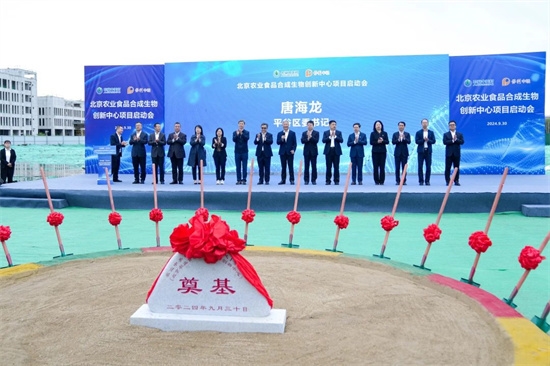 中国食品发酵工业研究院党委书记、总经理郭新光代表建设运营单位发言,项目管理单位和施工单位分别作表态发言。平谷区委书记唐海龙宣布项目开工,集团领导与市区两级领导嘉宾共同为北京农业食品合成生物创新中心奠基。