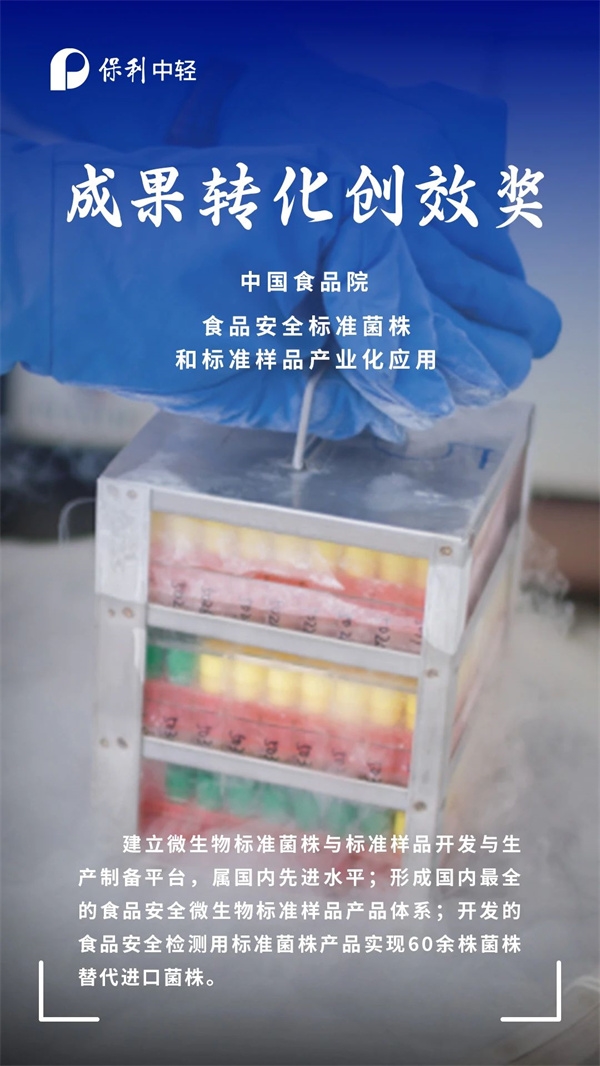 近日,保利集团第一届“青创杯”创新创效大赛结果公布。中国食品发酵工业研究院(简称“中国食品院”)开发的“食品安全标准菌株和标准样品产业化应用”项目获成果转化创效奖,中国海诚开发的“退役磷酸铁锂电池高效回收及高性能磷酸(锰)铁锂正极材料制备”项目获科技创新创效奖。此次获奖再次彰显保利中轻在科技创新工作方面的显著成效。快来围观,一起为他们打call!