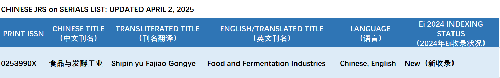 4月7日,保利中轻所属中国食品发酵工业研究院(简称“中国食品院”)主办的学术期刊《食品与发酵工业》成功入选国际数据库《工程索引》(EI Compendex),成为全球被收录的79种食品科学类期刊之一。这是《食品与发酵工业》发展历程中又一重要里程碑,标志着该期刊学术价值、研究质量及国际化水平获得国际权威机构的高度认可与肯定,彰显中国食品院科技期刊学术引领力和国际影响力得到极大提升。