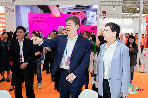 赵国昂一行参观本届展会现场,与展商代表进行面对面交流,了解企业生产经营、特色产品、设备情况,并对CIDPEX展会为行业搭建起的沟通洽谈平台给予充分肯定。