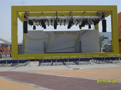 五大洲广场为上海世博园区露天舞台搭建工程,包括露天舞台的辅助用房和露天舞台,可举办各国各民族风情歌舞表演、大型户外音乐会、演唱会、街头演艺活动等。固定舞台,每个